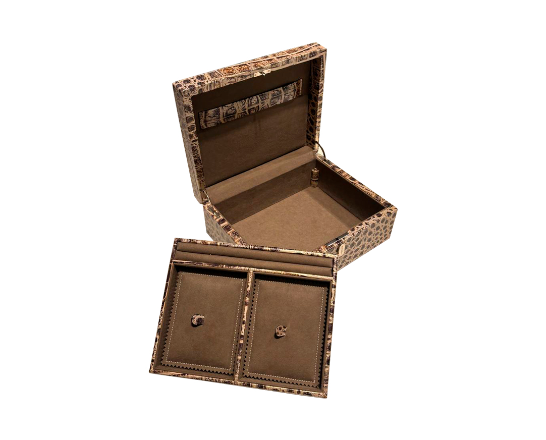 Fendi casa былғары қорабы-сән-салтанаттың, стильдің және талғампаздықтың көрінісі. Жоғары сапалы былғарыдан жасалған, ол кез-келген интерьерге керемет аксессуар болып табылады, оған ерекше сүйкімділік береді. Оның әрбір бөлшегі ең кішкентай нюанстарға дейін ойластырылған, бұл өнімге мінсіз көрініс береді. Ол кез – келген интерьер стилін керемет толықтырады-классикалықтан қазіргі заманға дейін, оған сән-салтанат пен талғампаздық береді. Fendi casa қорабында ең құнды заттарды сақтауға мүмкіндік беретін кең ішкі кеңістік бар. Былғарыдан жасалған әрлеу арқылы ол мазмұнды мінсіз күйде сақтай отырып, сенімді қорғауды қамтамасыз етеді.