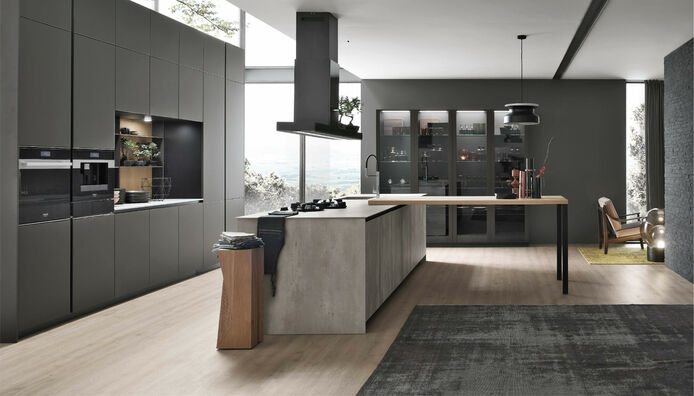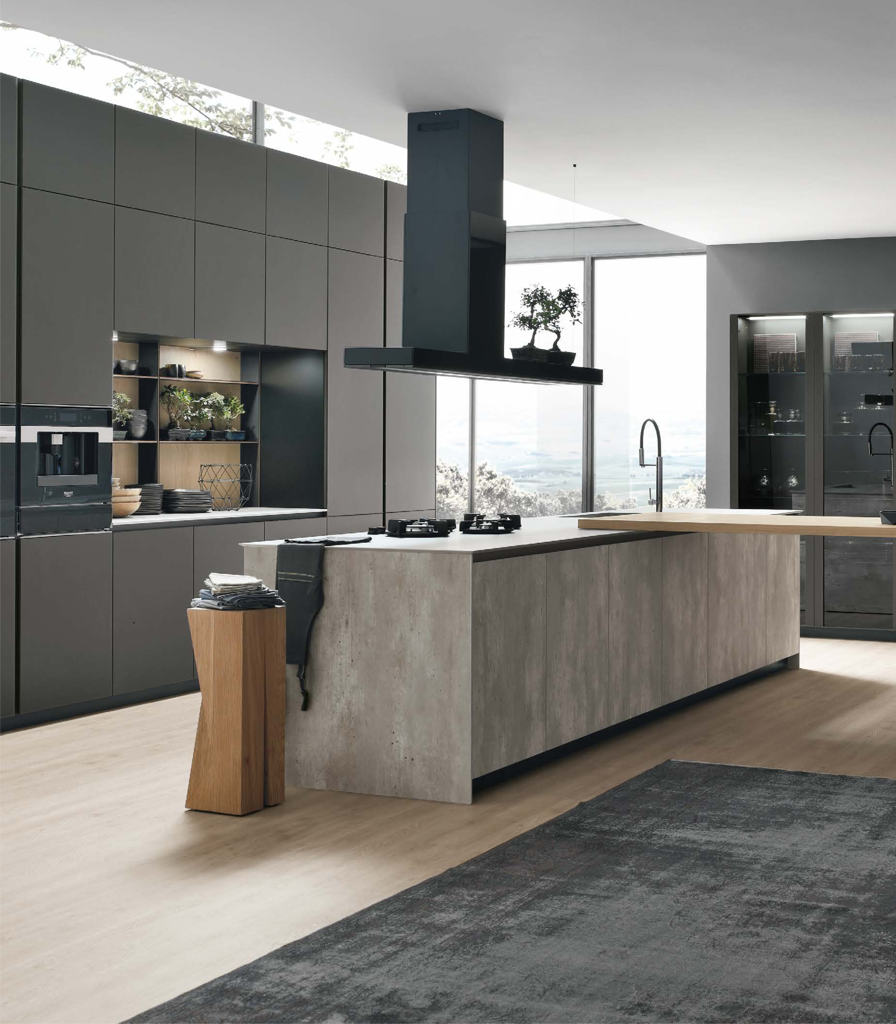 Nero spazzolato-ның жаңа әрлеуімен заманауи тартымдылық таза және әсерлі ерекшеліктері мен сызықтары бар батыл Арал жасайды. Ас үйде раковина, плита, үстел үсті және біріктірілген бар қажет болуы мүмкін. Stosa фабрикасының Aliant асханасы-бұл ауада "ілулі" бармен сәнді заманауи шешім. Қасбеттер жақтаулармен безендірілуі немесе тегіс беттері болуы мүмкін. Дизайнерлер ұсынады