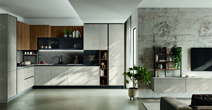 Kaya коллекциясы үшін таңдалған материалдар ерекше және ерекше жағдай жасайды, онда талғампаз ағаш беттері қатаң тастан жасалған әрлеумен өтеледі. Екі жағынан жабылған бұрыштық композиция барлық негізгі функцияларды орындайды және үй заттарын сақтау үшін түпнұсқа кеңістіктер жасайтын өзара енетін ашық бөлімдермен және қабырға шкафтарымен сипатталады.