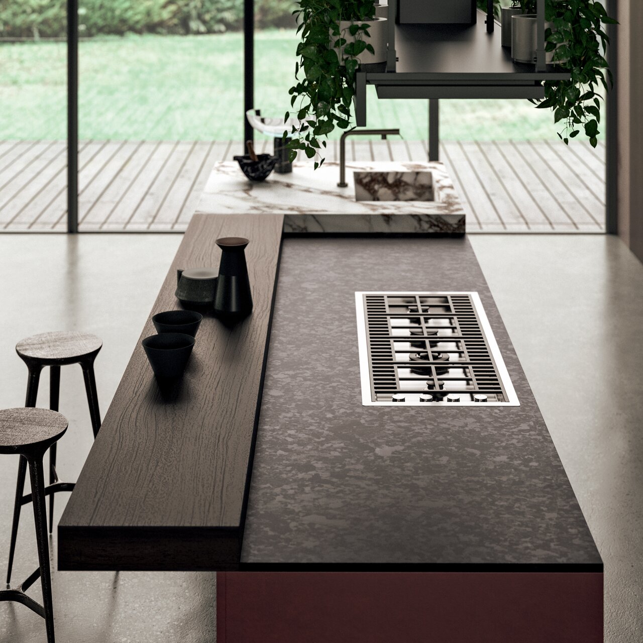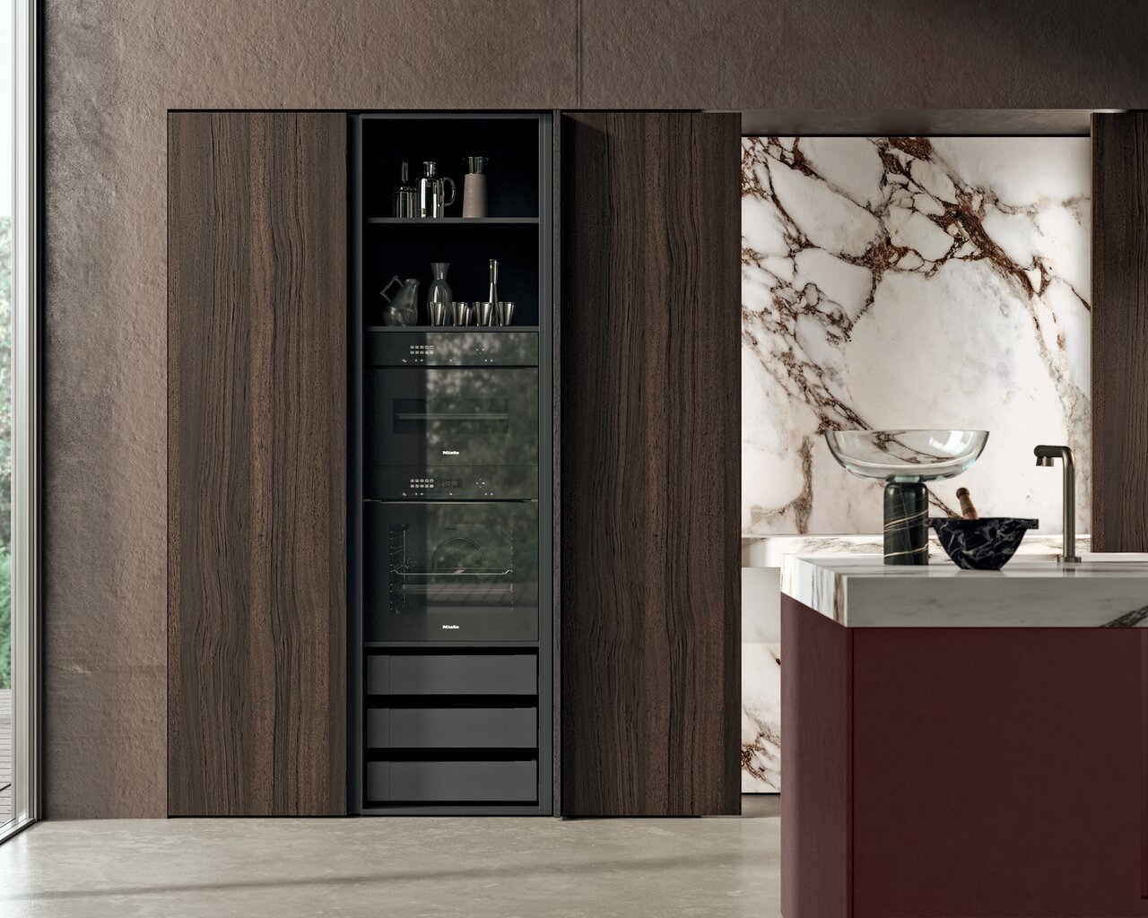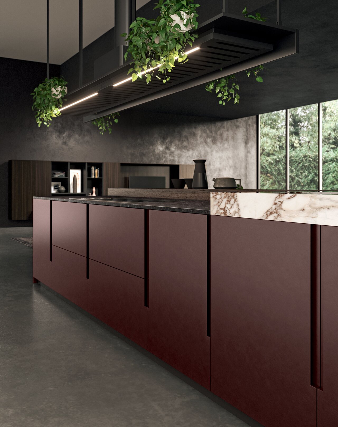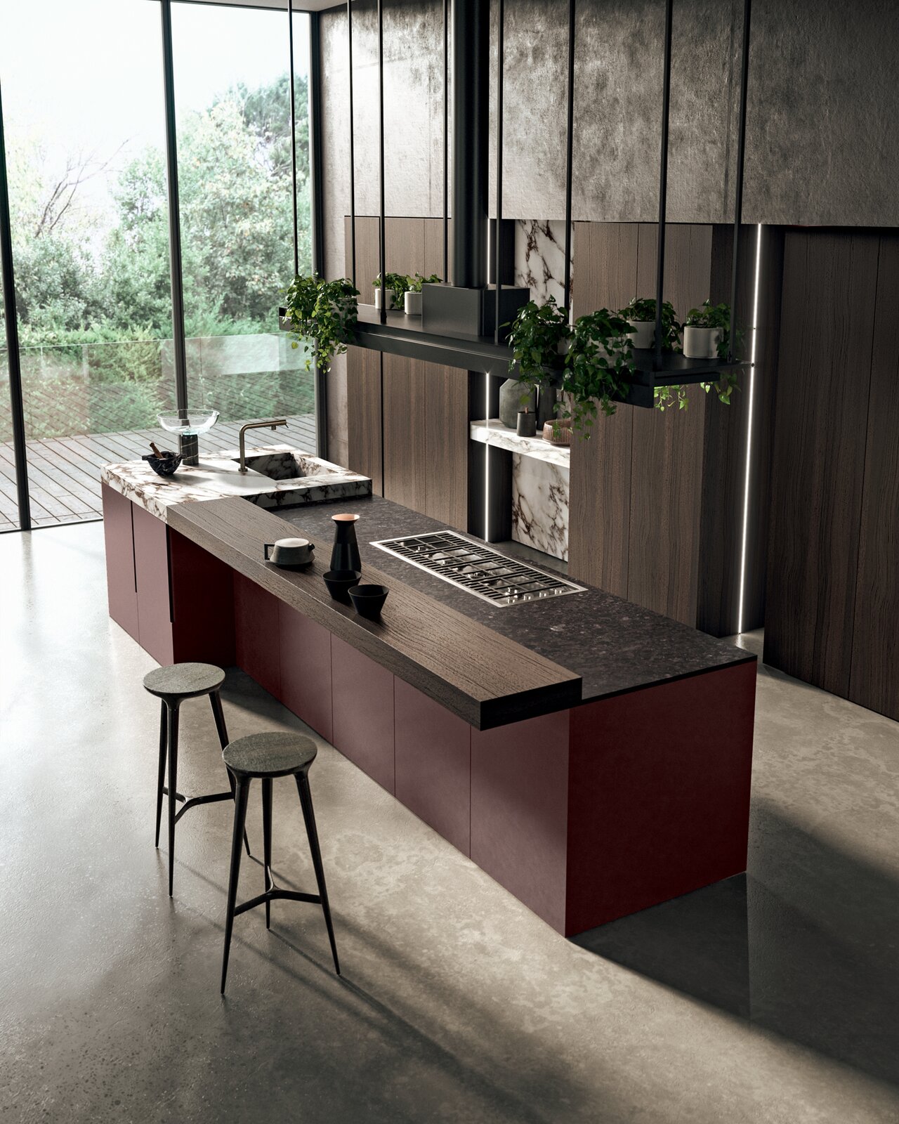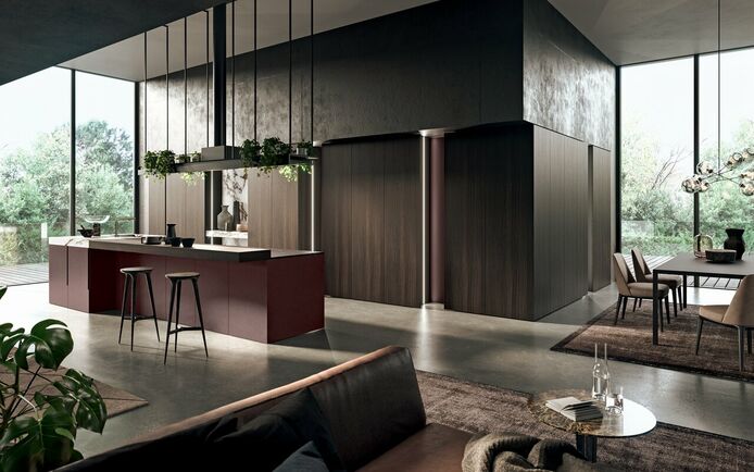 Binova ашық есік күнінің рухын анықтайтын жаңа жобаны ұсынады, ол енді бейресми көріністерден қорықпайды, мұнда кеңістікті қабылдау өзгереді, енді ысырапшылдық болмайды. Бүкіл бөлме айналатын негізгі элемент-асүйді қонақ бөлмесімен байланыстыратын және бірдей элементтерді пайдаланатын бір сызықта қосылған әртүрлі тереңдіктегі модульдерден тұратын L-тәрізді қабырға бағанасы.пішіндер мен функциялардың ластануының "континуумы". Бағандардың тағы бір күшті ерекшелігі-ағаш қабырғаның әсерін жеңілдететін және сонымен бірге қасбеттер мен әдемі жарық конустарын ашуға мүмкіндік беретін саңылаулар. Vogue есіктері бар арал ашуға мүмкіндік беретін тік ойықтармен және лакпен қапталған 4.0 металл әрлеуімен ерекшеленеді. Тағы бір инновациялық элемент-бұл консольді үстелдің үстіңгі тақтайы, ол әлеуметтенуге ыңғайлы аймаққа кепілдік береді. Тірі қабырға ас үймен бірдей әрлеуге ие және кіріктірілген ашық модульдері бар толық және бос кеңістіктерді жасауға мүмкіндік беретін қиылысатын көлемдермен сипатталады, ал сервантта Vogue есіктері мен қалың gres үстелі бар.