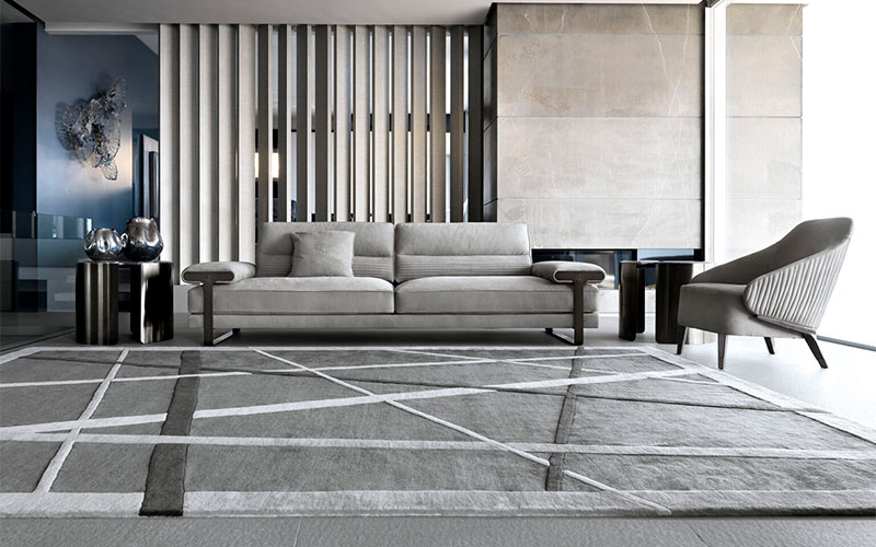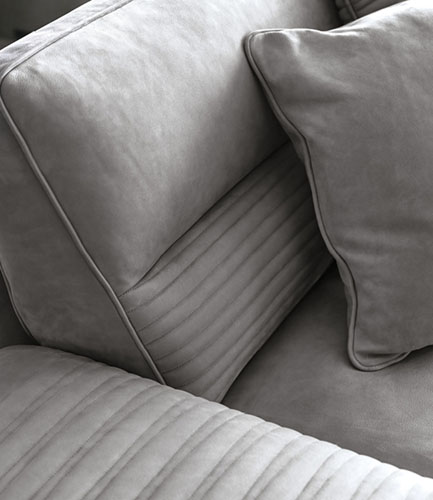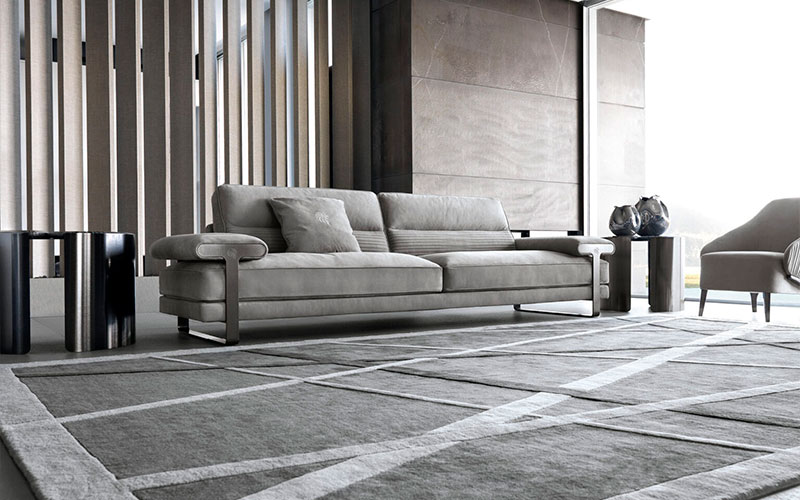 3 орынды диван қол жетімді: былғары, нубук, кесіртке басылған былғары, барқыт немесе күдері мата. Арнайы диванның орындықтары мен бүйірлері полиуретанды көбік тігісімен, қауырсынмен оралған. GIORGIO топтамасының лазерлік логотипі бар атласты қара никель дат баспайтын болаттан жасалған қол тіректеріндегі аяқтар мен металл төсемдер.