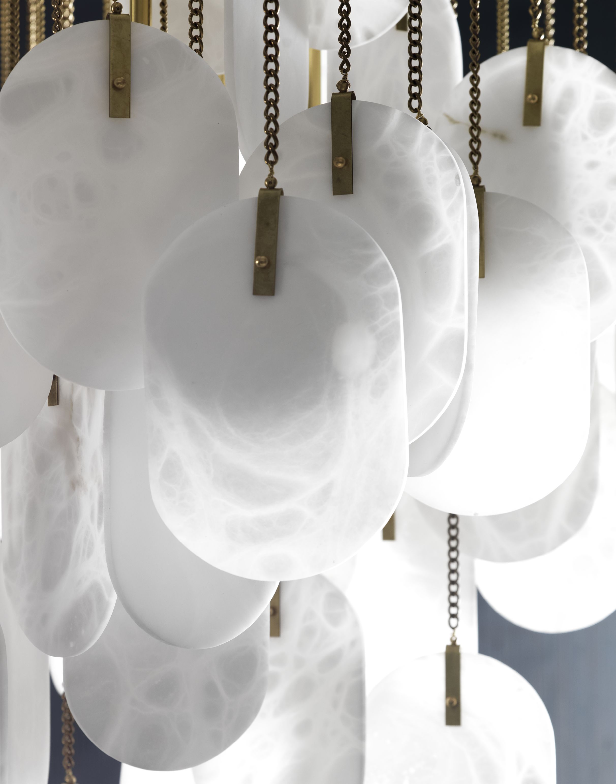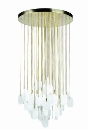 Gravity-бұл табиғи жезден жасалған алебастр кулондары бар 8 шамнан тұратын табиғи жезден жасалған люстра.